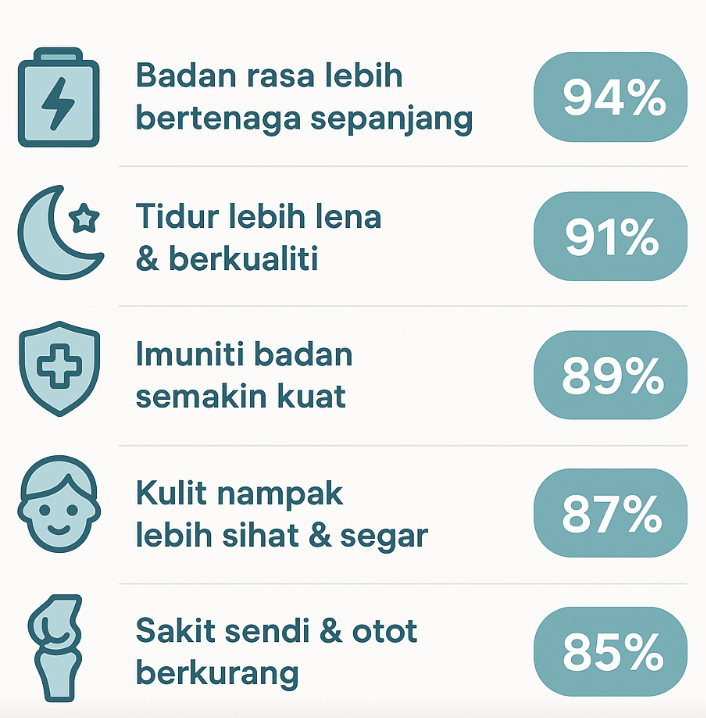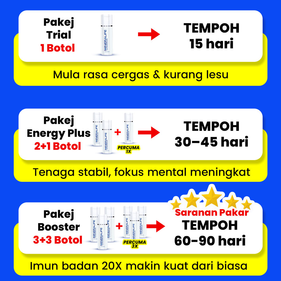 Sesuai untuk semua peringkat umur seawal 1 tahun hingga warga emas, terutamanya individu yang sering letih, kurang bertenaga, kerap sakit otot atau sendi, masalah tidur, kulit kusam, daya imun rendah, atau mempunyai gaya hidup aktif yang memerlukan tambahan mineral.